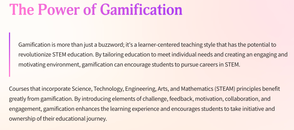 As a Learning Experience Designer with extensive experience in STEM education and instructional design, I’m passionate about unlocking the true potential of gamification to enhance motivation in STEM. Join me on this journey as we delve into the intricate world of gamification, motivation, and self-determination in STEM education.