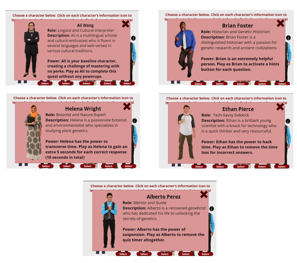 Using a headshot of the course instructor, I transformed him into an animated character who became the voice and face of the adventure. This animated instructor set the stage at the beginning of the quest, explaining the rules and objectives in an engaging and entertaining manner. Not only did this add a layer of familiarity and comfort for the students, but it also bridged the gap between the virtual adventure and the real-world classroom.