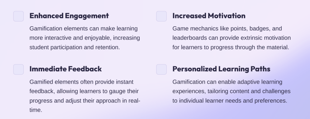 - Always prioritize learning objectives over gamification elements. Game mechanics should enhance, not overshadow, the educational content.