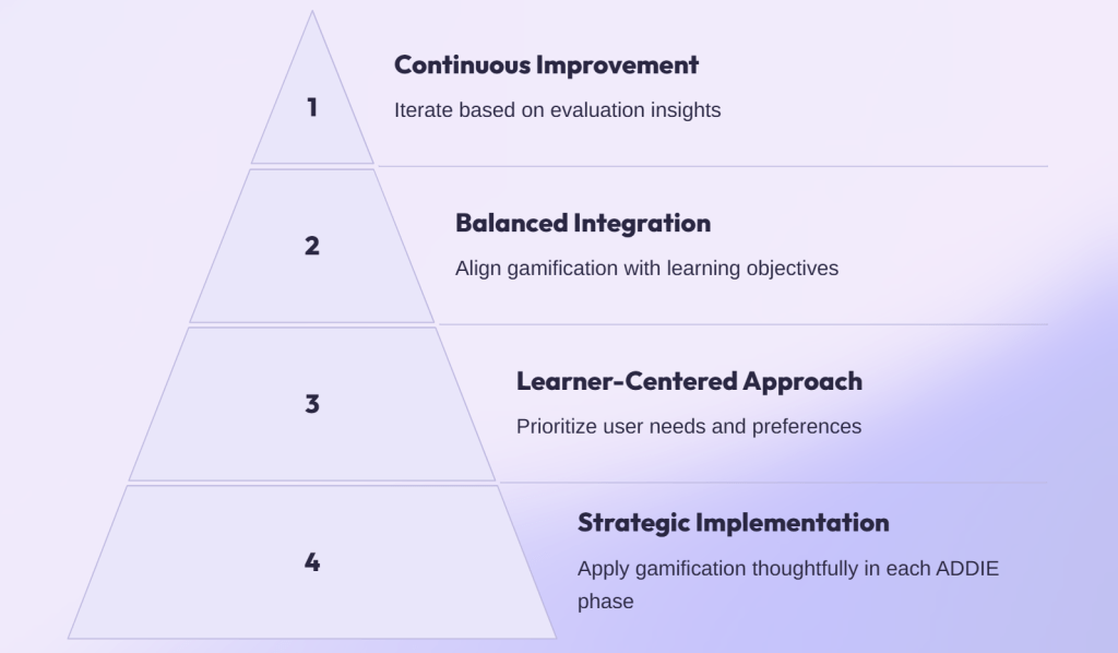 As you move forward with implementing gamified e-learning using the ADDIE framework, keep these key recommendations in mind: